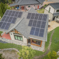 Features: Two-array residential flush-mounted solar system with all-black panels. Owner inspired by Greener Homes loan and local Lunch and Learn event.