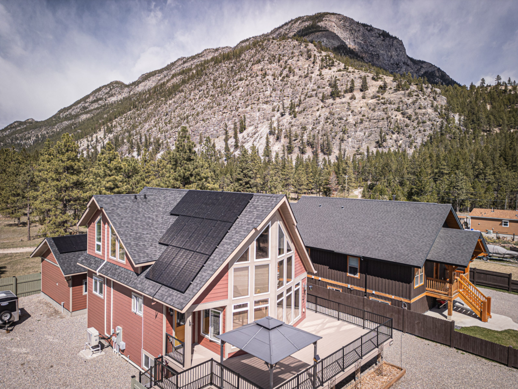 This 18 kW residential flush-mounted solar PV system in Canal Flats, BC was a technical install due to a steep roofline and required a pass-thru meter base. Installed for a repeat client, ROI was a key factor for this investor.